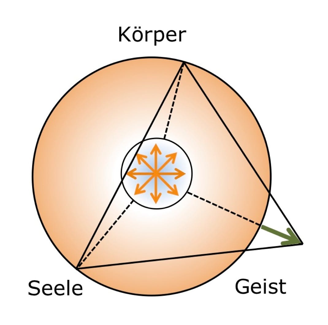 Über die direkten Verbindungen von Körper, Geist und Seele kann die Homöostase genährt und vergrößert werden. Diese kann in das Dreieck zurückkehren, wodurch die Gesundheit wieder in unser System regulierend und gesundheitserhaltend eingreift.